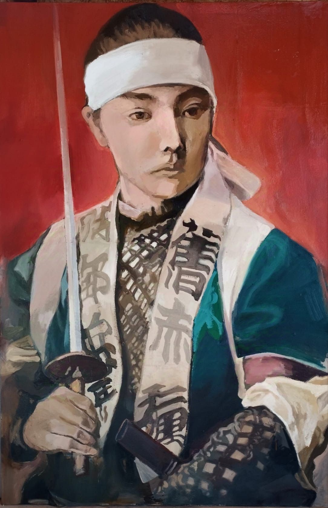 Mujer Samurái Técnica óleo sobre papel continuo, sobre tela. Medidas:175'5 x 117'5cm